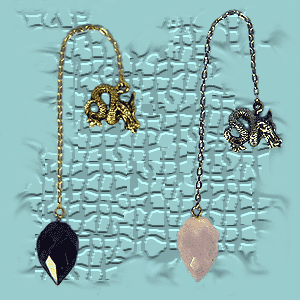Metal dragon and chain. Choose either a Bloodstone or Aventurine point.